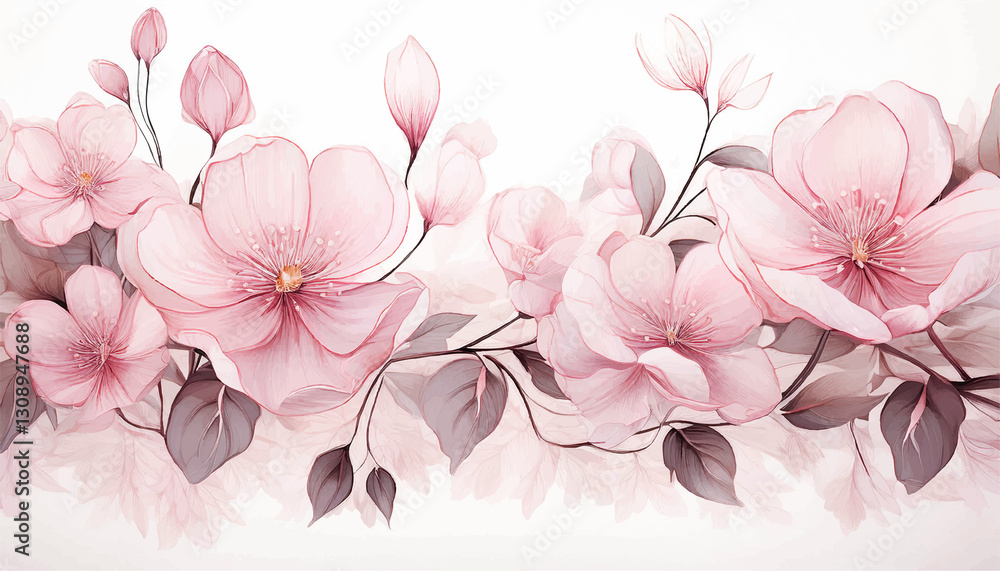 Fototapeta Trendy - Różowe namalowane kwiaty vintage tapeta #1308947688