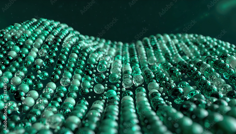 • Zielone, kryształowe kule poukładane jedna koło drugiej tworząc tło