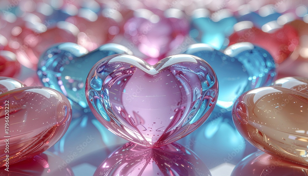 Fototapety Trendy - Kształt serca wykonany z przezroczystej gładkiej masy przypominającej szkło lub plastik. Serce o... #1796020232