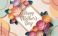 • Elegant floral Mother’s Day greeting card with colorful paper flowers and gold frame on pastel geometric background