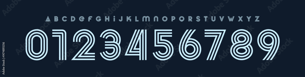 • Outline deco typography, striped monoline font, modern linear alphabet, retro logo typeface, geometric artstyle numbers, boutique fashion branding, editorial headline letters. Vector typeset.