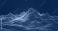 • Glowing blue digital wireframe mountain range with peaks and valleys on a dark background, representing futuristic 3D data landscape visualization