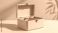 Geometria - Open Storage Box on Peach Background with Leaf Shadows #1600204463