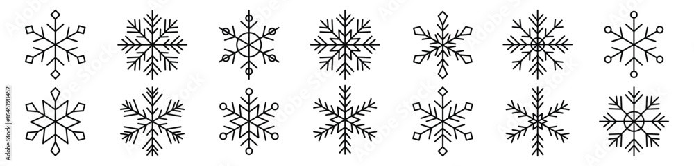 Geometria - Collection of different form snowflakes vector icon. Winter frost crystal snowflake icon #1645198452