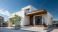 • Maison moderne avec façade blanche et détails en bois sous ciel bleu