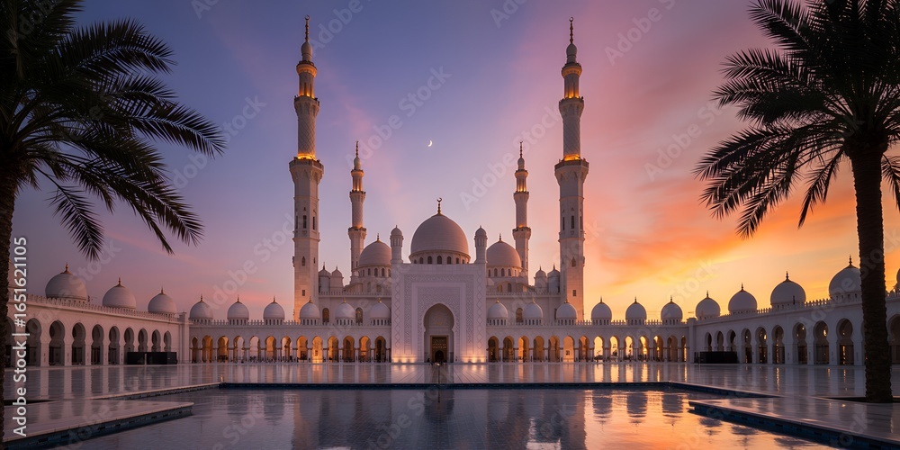Geometria - Sheikh Zayed Mosque in Abu Dhabi A Majestic Architectural Wonder at Sunset with a Tranquil... #1651621105