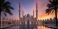 • Sheikh Zayed Mosque in Abu Dhabi A Majestic Architectural Wonder at Sunset with a Tranquil Reflection Pool