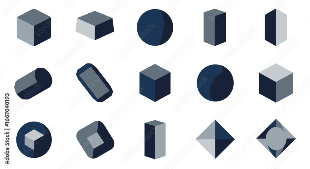 Geometria - Abstract geometric shapes collection in blue and gray isometric design #1667040193