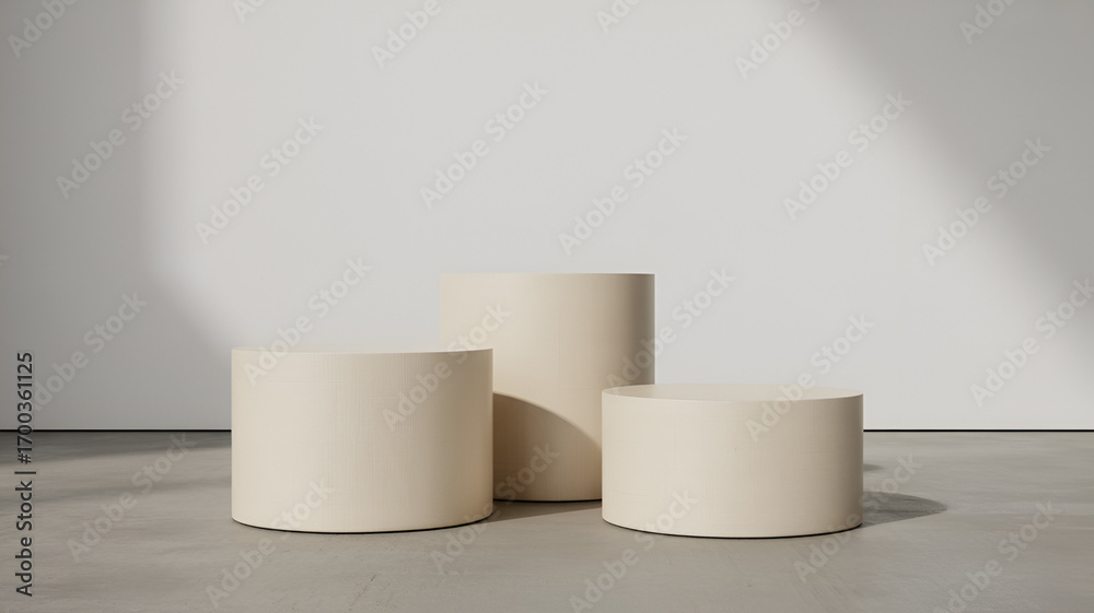 Geometria - minimal abstract podium scene with round cream stage and geometric wall shadows, clean neutral... #1700361125