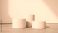 • minimal abstract podium scene with round cream stage and geometric wall shadows, clean neutral background design for product display, presentation or branding template