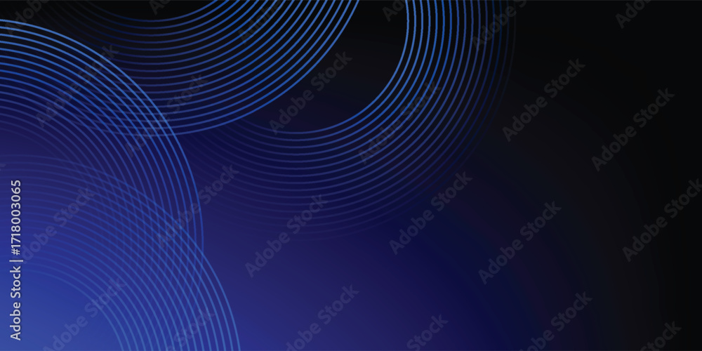 Geometria - Abstract blue glowing geometric lines on dark blue background. Modern shiny blue circle lines... #1718003065