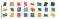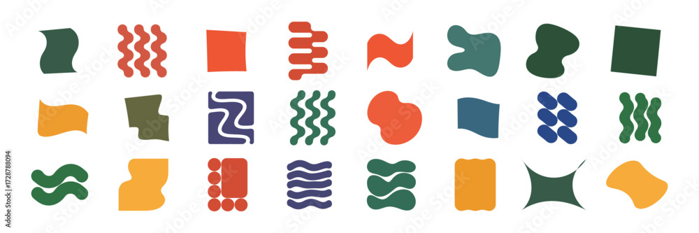 • A collection of abstract organic shapes and geometric forms in various colors and patterns, isolated on a transparent background