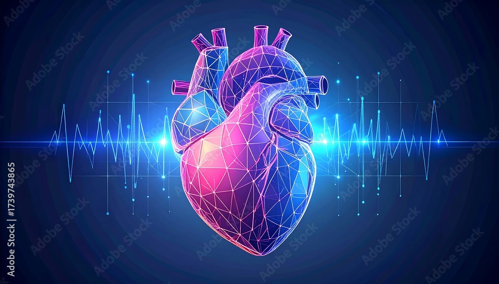 Geometria - Low-poly heart graphic with EKG #1739743865