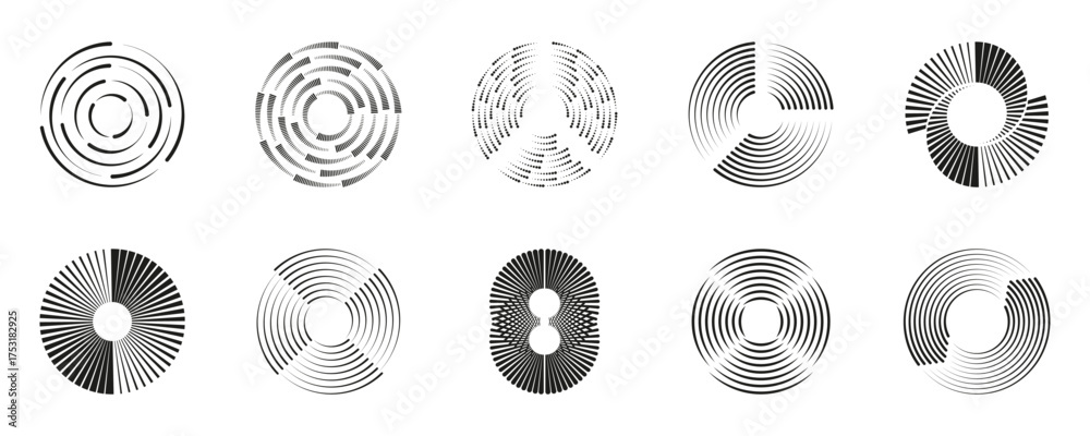 Geometria - Geometric Spiral Circular Line Shapes Set Isolated on Transparent Background. Modern Dynamic... #1753182925