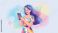• Vibrant young woman with colorful hair joyfully using a smartphone, surrounded by social media icons, representing connection and digital communication in a modern, abstract, and soft-focus