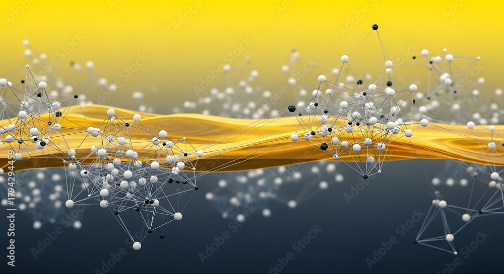 Geometria - Abstract Molecular Structure Plexus Science Background with Golden Wave Illustration #1794294459