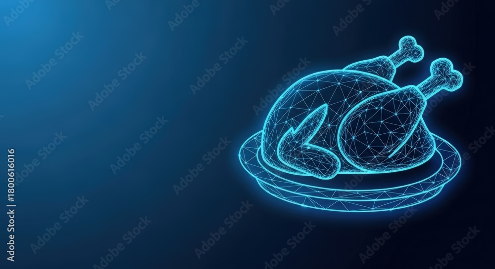 • Abstract digital turkey on a platter glowing in a blue design