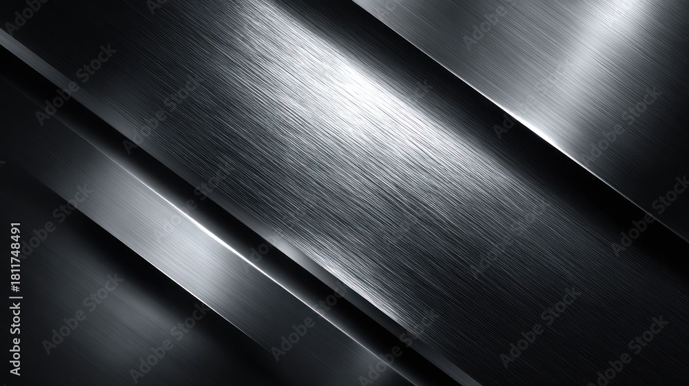 Geometria - Sleek, metallic background with diagonal, brushed metal bands and reflective surfaces #1811748491