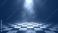 • Illustration presents a checkerboard floor in dark scene. The floor is tiled black and white. Above the floor is a cloud with lighting in the middle.