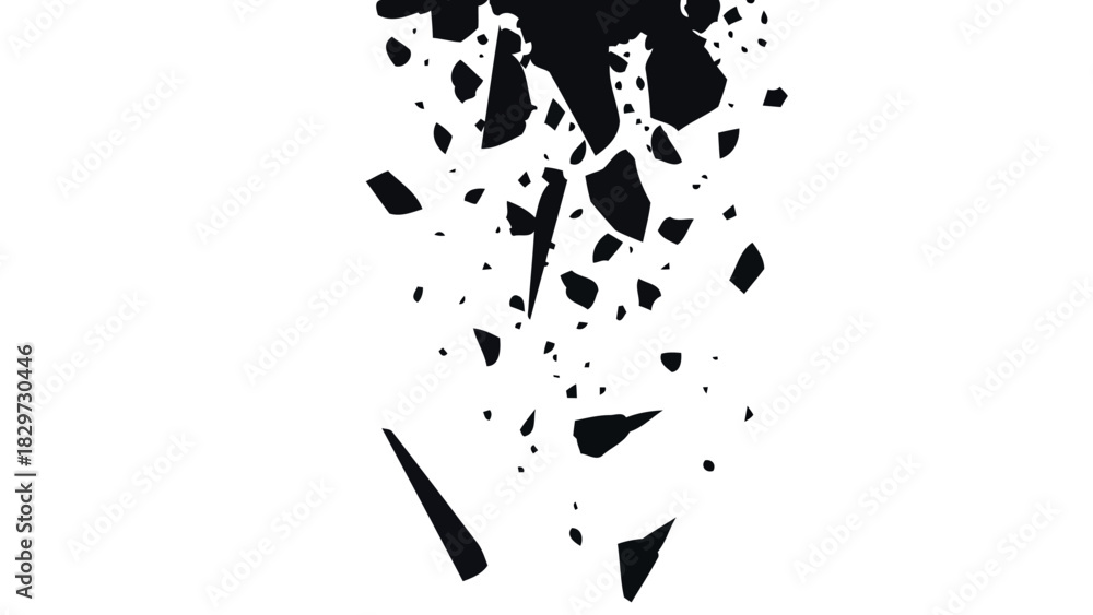 • Abstract black and white shattered debris pattern silhouette