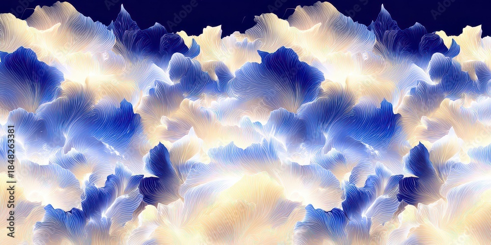 Geometria - Abstract Blue and Gold Textured Background with Cloud Like Formations and Sparkling White Dots... #1848263381