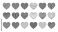 • Set of heart icons featuring various internal geometric and optical patterns like stripes and concentric circles for unique designs.