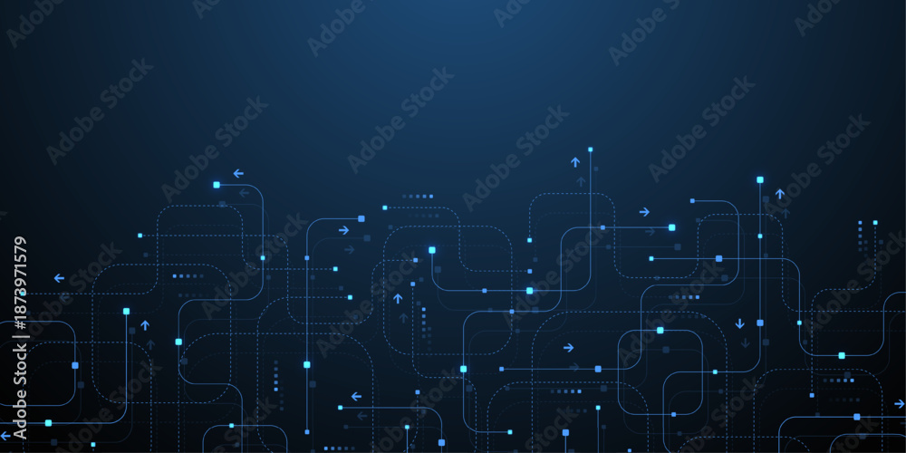 • Creative idea AI banner concept for internet technology. Artificial intelligence technology circuit board background texture design. Digital concept for poster, cover, banner, header, web template