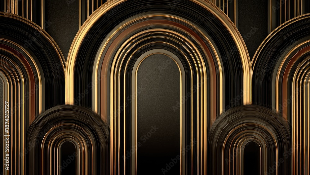 • Abstract golden-lined arches against a dark gradient backdrop, sophisticated and geometric