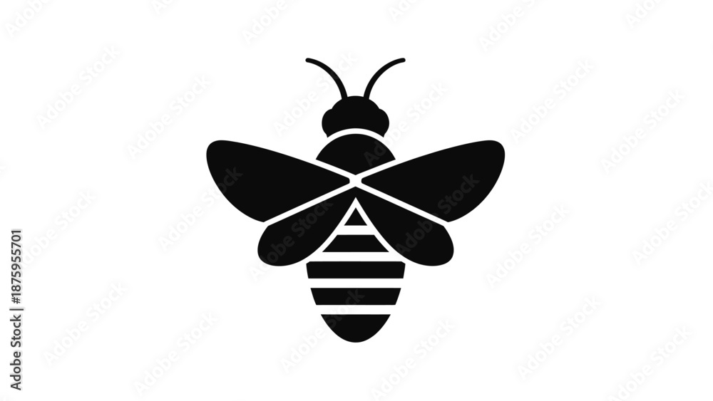 Geometria - Simple black and white bee icon with geometric wing and body design. #1875955701