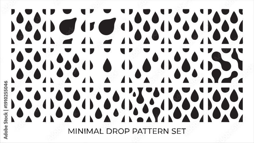 • Minimal drop pattern set: collection of falling water and rain shapes for elegant backgrounds