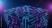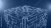 • Abstract maze cube with glowing lines and neon light represents complex problem solving and technological challenges