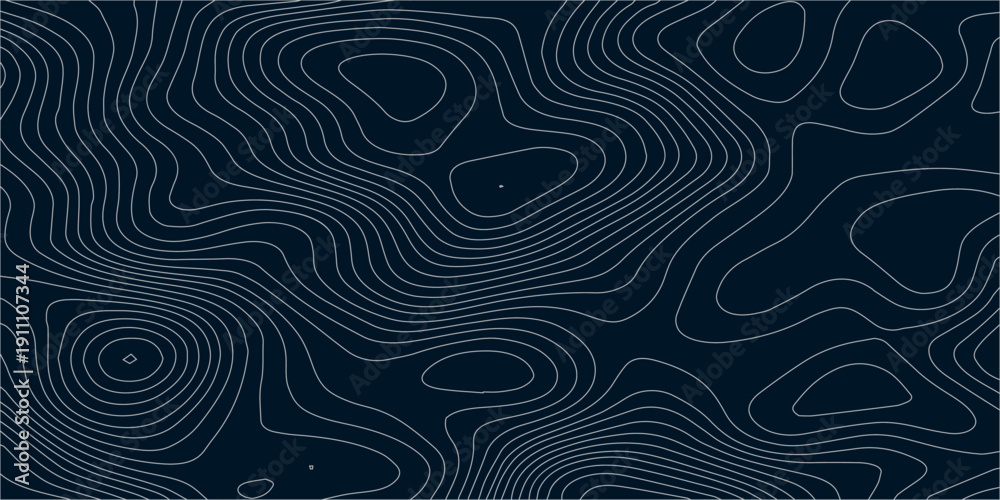Geometria - Abstract topographic map background in dark blue with white and light gray contour curves... #1911107344