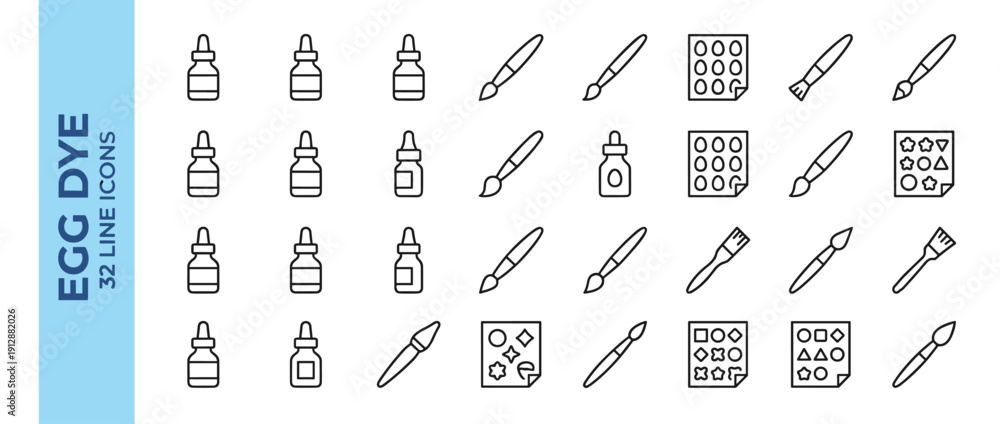 Geometria - Egg Dye Icon Set Featuring 32 Thin Line Vector Icons of Dye Bottles, Paintbrushes, and Decorative... #1912882026