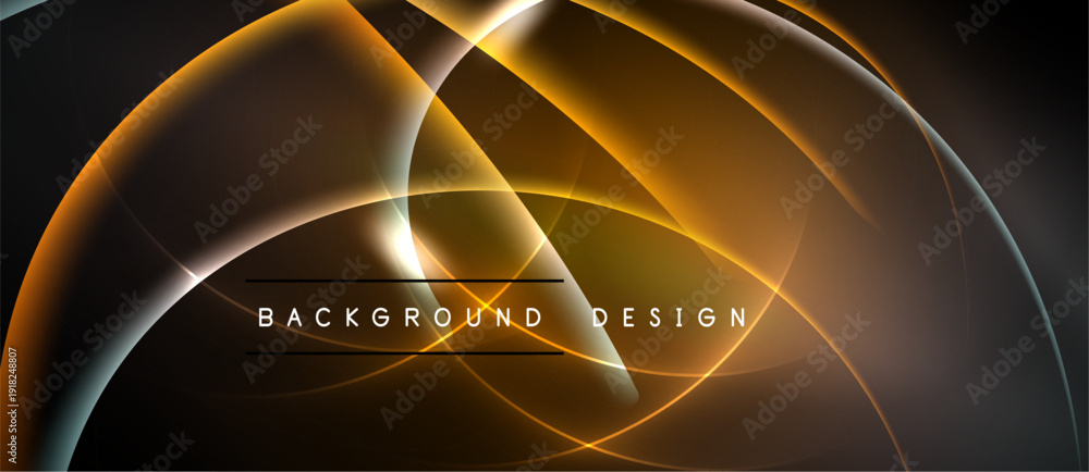 Geometria - Abstract design features flowing golden lines, dark background. Elegant curves create dynamic... #1918248807