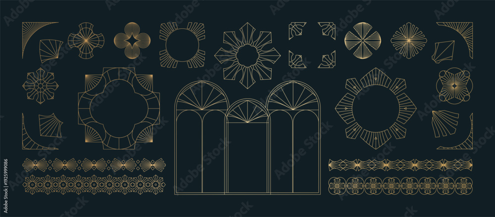 Geometria - A collection of geometric Art Deco ornament vectors. Luxury golden decorative elements featuring... #1925999086