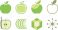 • Green apple icon set with whole sliced outline and geometric styles fresh fruit collection for healthy food logo and grocery design projects.