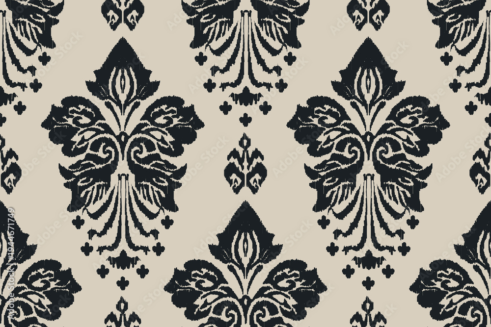 • Modern Monochrome Boho Background.Seamless Ethnic Abstract Ikat Ornament.Bold Tribal Medallion Textile Design.Traditional Asian Ikat Textile Design.Seamless Geometric Folk Art Wallpaper.