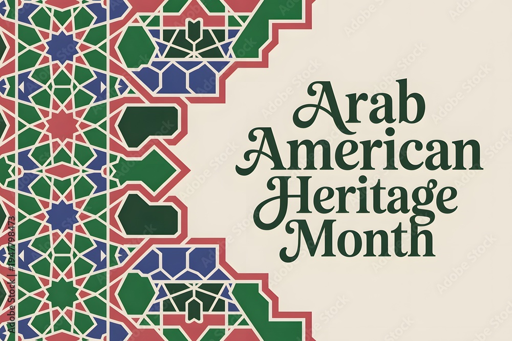 • Arab American Heritage Month vector illustration design with geometric mosaic pattern and cultural celebration text