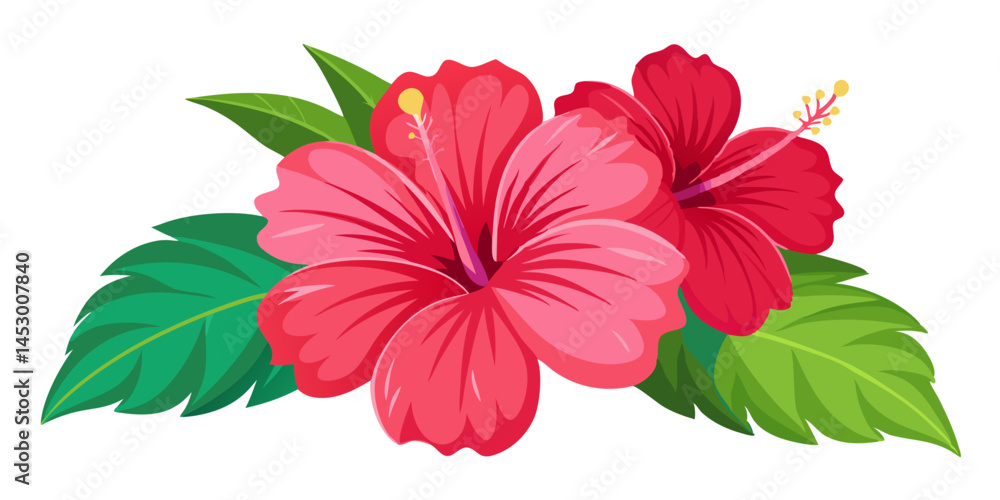 • Red hibiscus flower floral bloom blossom tropical hawaiian petals botanical vector art design
