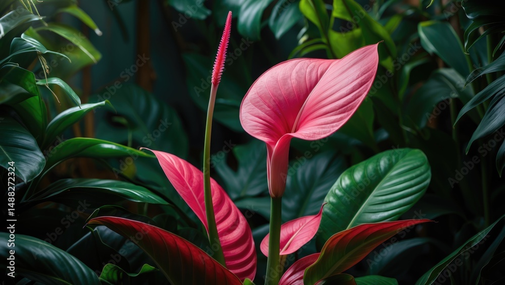 Kwiaty i rośliny - Blooming red anthurium flowers #1488272324