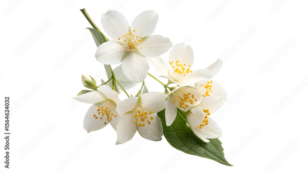 • flowers of jasmine with vibrant leaves isolated on transparent background