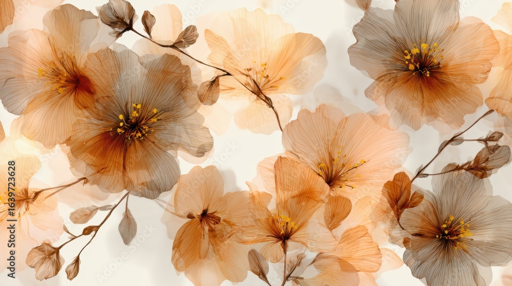 Kwiaty i rośliny - Delicate floral pattern showcases soft brown and beige blooms with a watercolor aesthetic,... #1639723628