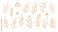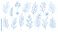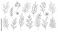 • Collection of white line art botanical elements and flowers on black background plant branch