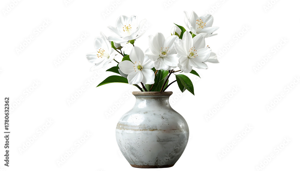 Kwiaty i rośliny - Decorative Vase with White Blossoms PNG #1780632362