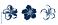 • Vector set of black silhouettes of tropical hibiscus flowers isolated on a white background.