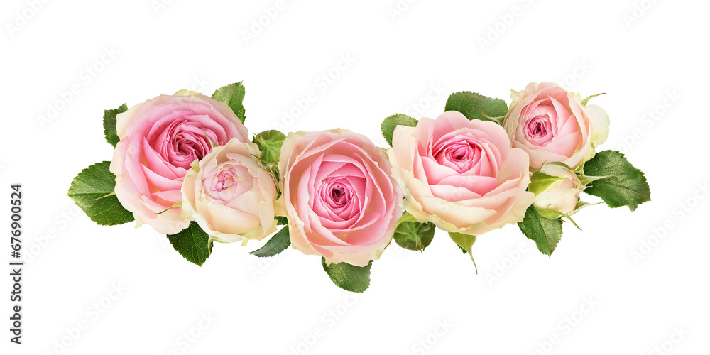 Kwiaty i rośliny - Small pink rose flowers in a floral arrangement isolated on white or transparent background #676900524