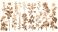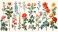 • Intricate vintage botanical illustration of various flowers on a white background.