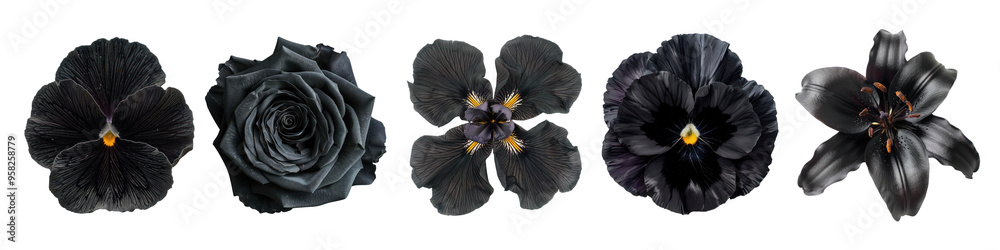 Kwiaty i rośliny - Blooming black flower png cut out element set #958258779