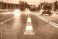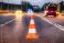• Ostrzegawczy słupek na drodze w miejscu wypadku drogowego. Objazd.