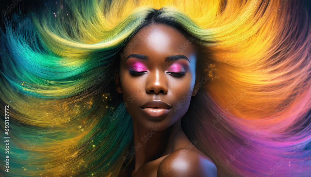 Młoda kobieta, kolorowe włosy portret, generative AI